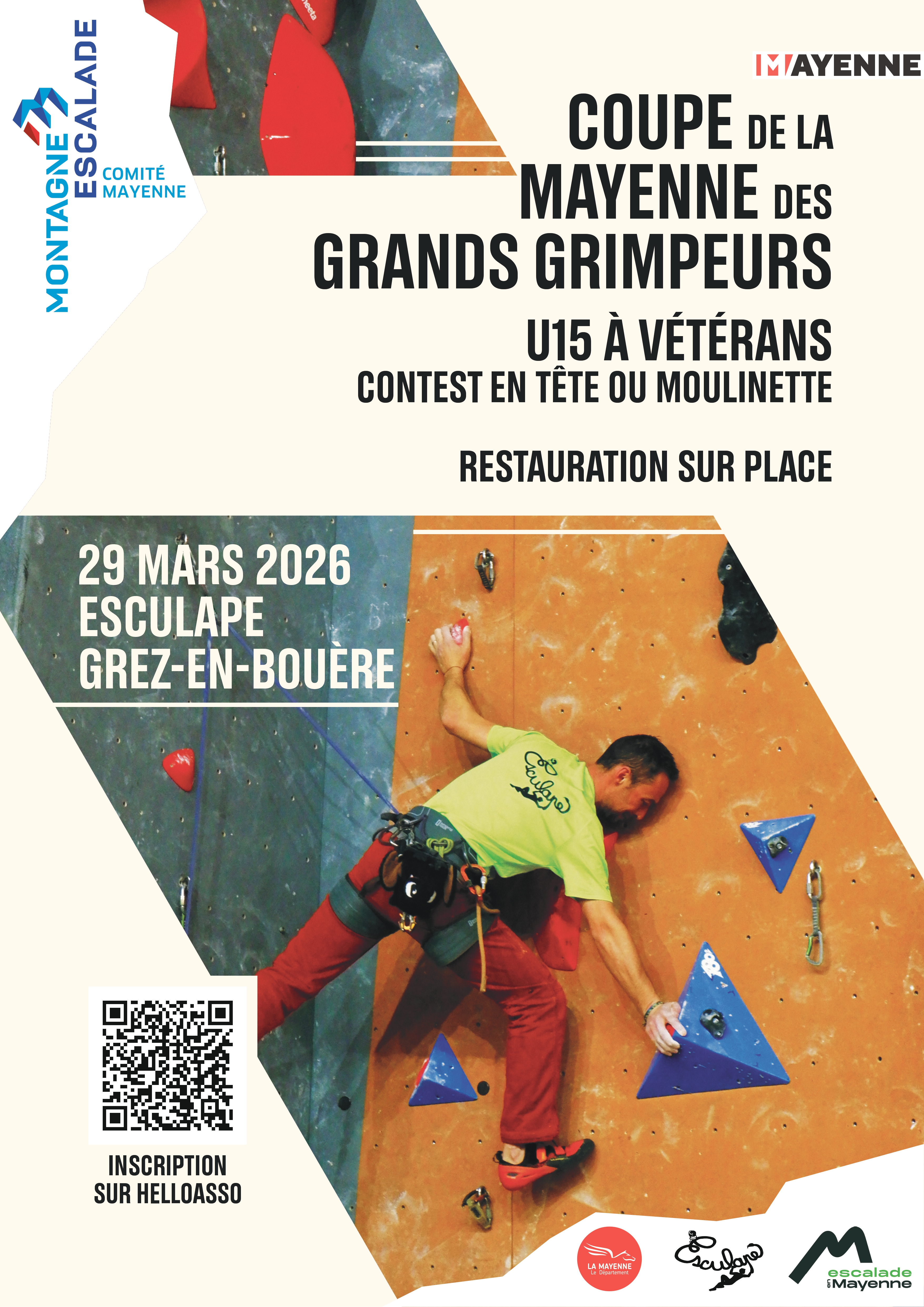 Voici plus d’informations concernant la coupe des Grands Grimpeurs qui se déroulera à Grez-en-Bouère le 29 mars prochain.